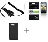 HTC Liberty Aria Black Rubberized Hard Protector Case + Screen Protector + Car Charger