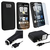 Black Silicone Skin Case + Retractable Car Charger + Travel Charger + Reusable Screen Protector for HTC Leo / Firestone / HD2