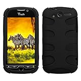 Black/Black Fishbone Design Hybrid Hard/Gel Phone Cover Protector Case for HTC T-Mobile Mytouch 4G